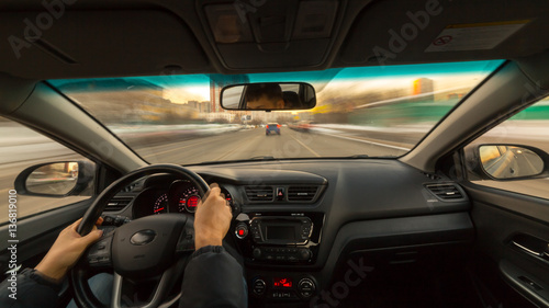 day city road view from inside car