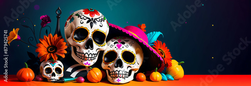 Day of the Dead. Dia de los Muertos themed banner background with empty space to enter your text
