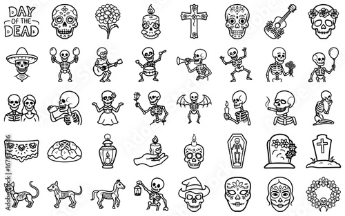 Day of the Dead icon collection on transparent background