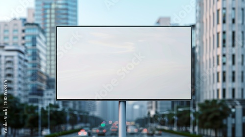 Daytime City Billboard Mockup: Realistic billboard in a bustling cityscape, prominently displaying an advertisement. Ideal for high-traffic areas like intersections and expressways, during the day.