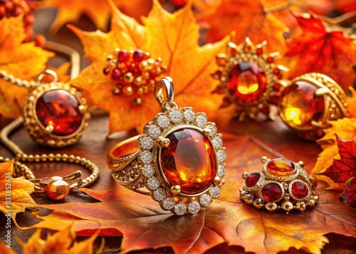 Dazzle with diamond and crystal jewelry. Sparkling autumn PNG accessories for your designs.