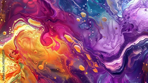Dazzling display of bright liquid tendrils spreading across a dark background. Dynamic flow of bright liquid colors creating an energetic backdrop.