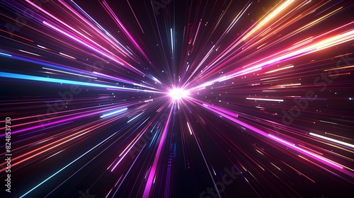 Dazzling Neon Light Burst with Vibrant Dynamic Rays on Dark Background
