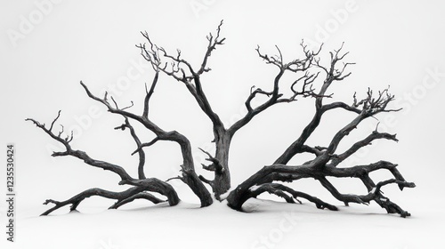 Dead tree branches, white background, winter scene, design element