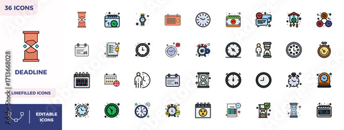 Deadline Vector Icon Collection featuring 36 PIXEL Perfect 128x128 Lineal Color Filled Designs
