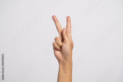 Deaf alphabet letter K by hand. Letter 'K' in sign language, isolated on a white background. Hand gestures. hearing impairment. languages that use visual manual modality. deaf signs.