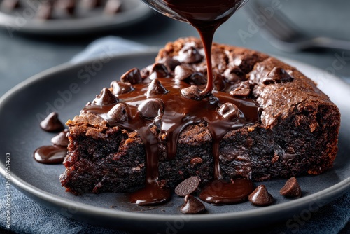 Decadent Chocolate Brownie Slice with Hot Fudge Drizzle