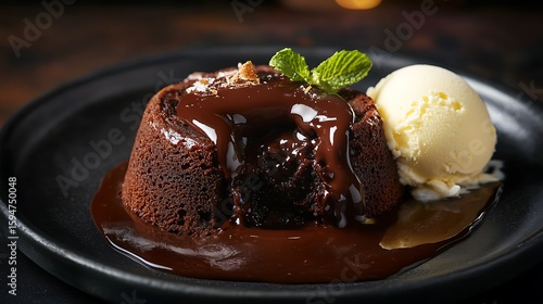 Decadent Chocolate Lava Cake with Vanilla Ice Cream and Caramel Sauce