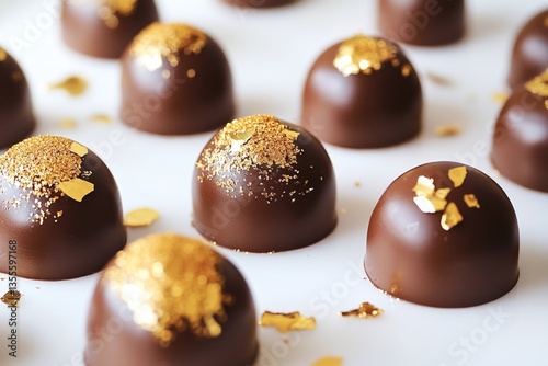 Decadent chocolate mousse adorned with delicate gold leaf for an elegant touch.