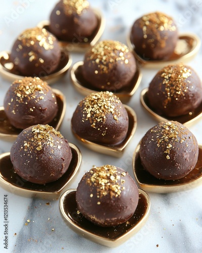 decadent chocolate truffles with gold dust and heart-shaped plates