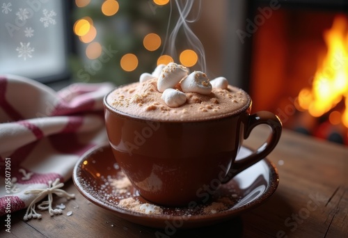 Decadent Hot Chocolate in Cozy Winter Setting with Fluffy Marshmallows and Warm Ambiance