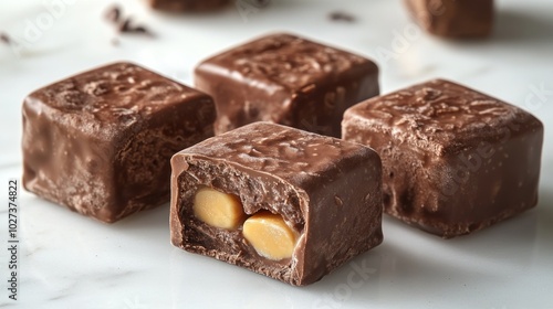 Decadent squares filled with creamy caramel and crunchy nuts, inviting a sweet indulgence