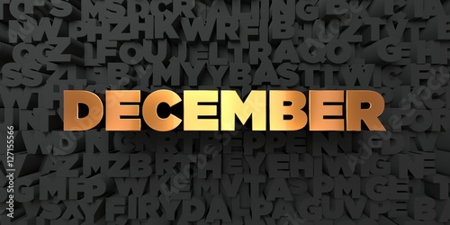 December - Gold text on black background - 3D rendered royalty free stock picture. This image can be used for an online website banner ad or a print postcard.