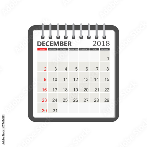 December 2018 calendar. Calendar notebook page template. Week starts on Sunday. Business vector illustration.