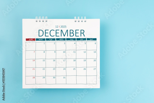 December 2025 Monthly desk calendar for 2025 year on blue color background.