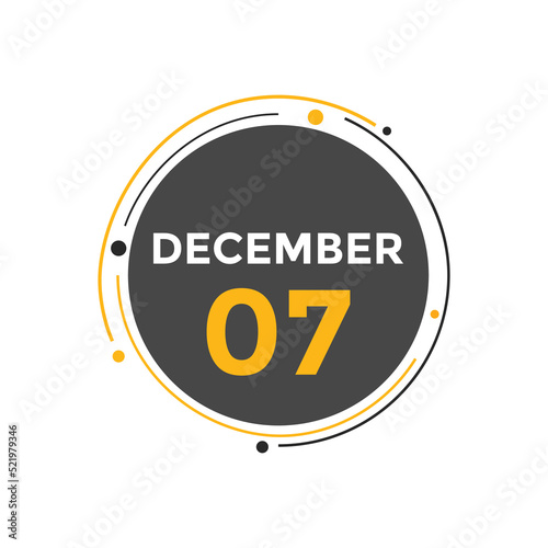 december 7 calendar reminder. 7th december daily calendar icon template. Calendar 7th december icon Design template. Vector illustration