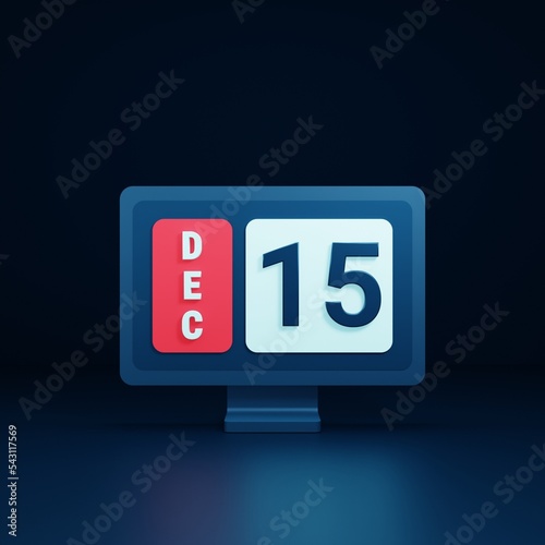 December Calendar Icon 3D Illustration with Desktop Monitor Date December 15