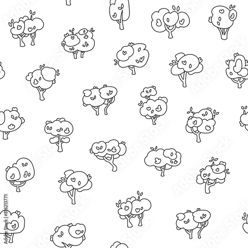 Deciduous tree. Seamless pattern. Coloring Page. Forest flora, agricultural garden and nature park plant. Hand drawn style. Vector drawing. Design ornaments.