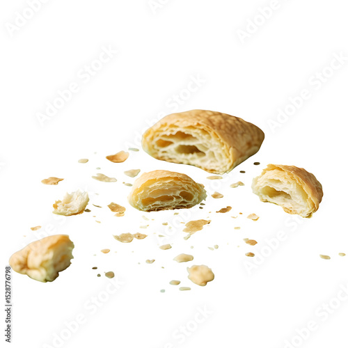 Deconstructed Golden Puff Pastry Crumbs and CrossSections Displaying Flaky Layers