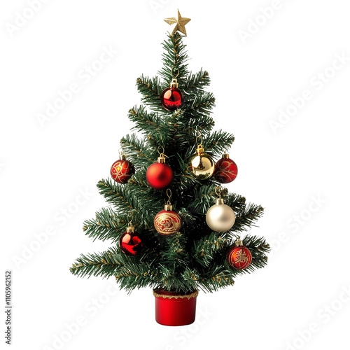 Decorated christmas tree isolated on white background, graphic element