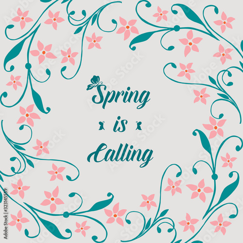 Decoration of spring calling greeting card, with unique leaf and floral frame design. Vector