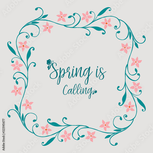 Decoration of spring calling greeting card, with unique leaf and floral frame design. Vector