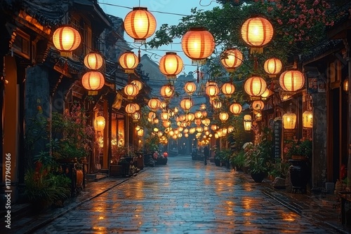 Decorations featuring Chinese lantern ornaments for the Mid Autumn Festival to bring luck, health, happiness, and prosperity to Singapore