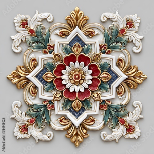 Decorative 3D embossed mandala flower with royal accents high resolution image