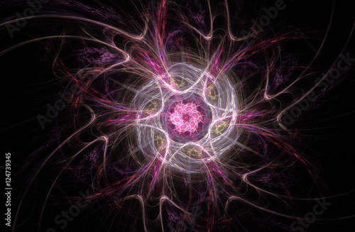 Decorative abstract fractal pink white composition on black background