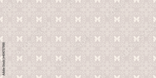 Decorative backgrounds with swirls and butterflies patterns. Seamless wallpaper texture
