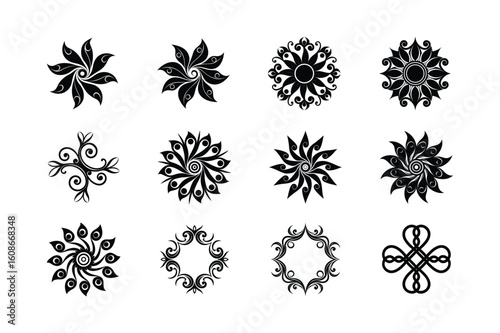 Decorative black flourish motifs for graceful visuals Silhouette Vector illustration