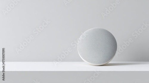 Decorative Ceramic Plate with Textured Pattern on Minimalist Shelf Against Light Grey Background