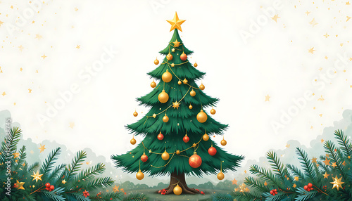 Decorative Christmas Tree with Gold and Red Ornaments in Festive Setting