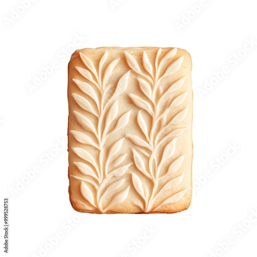 Decorative cookie with leaf pattern on a white isolated background.