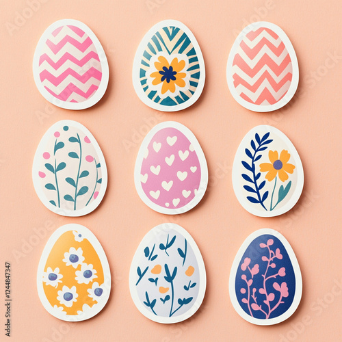 Decorative Easter eggs intricate floral pastel pink blue patterns artistic delicate holiday arrangement