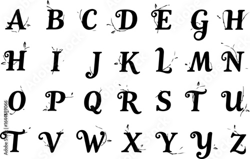 Decorative Floral Alphabet – Stylish Black Letter Set vector bundle