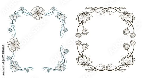 Decorative floral borders with elegant botanical illustrations and swirling vines for artistic design projects.