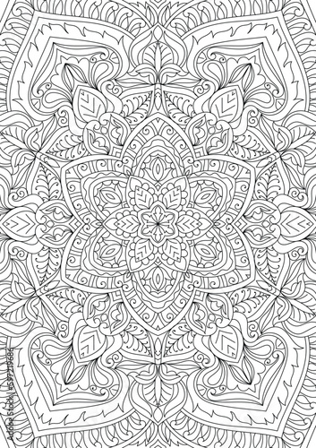 Decorative floral mehndi design style coloring book page illustration hand drawn