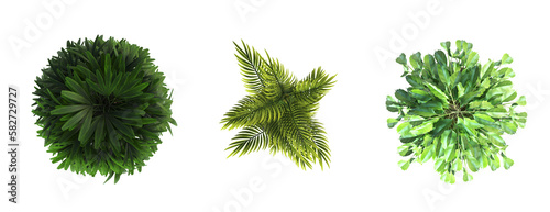 decorative flowers and plants for the interior, top view, isolated on transparent background, 3D illustration, cg render