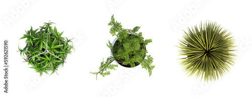 decorative flowers and plants for the interior, top view, isolated on transparent background, 3D illustration, cg render