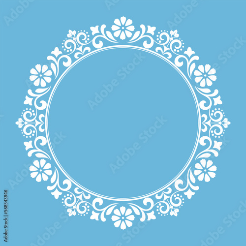 Decorative frame Elegant vector element for design in Eastern style, place for text. Floral blue and white border. Lace illustration for invitations and greeting cards