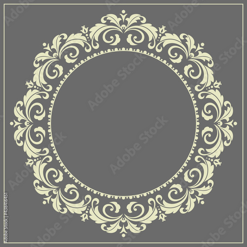 Decorative frame Elegant vector element for design in Eastern style, place for text. Floral gray border. Lace illustration for invitations and greeting cards