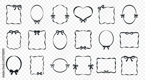 Decorative Frame Vector Set With Bows. Hand Drawn Decorative Frame Collection for Invitation Design. Cute Decorative Frame Borders in Oval, Heart, Square Shapes for Scrapbooking, Wedding, Greeting