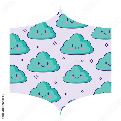 decorative frame with kawaii clouds pattern over white background, colorful design. vector illustration