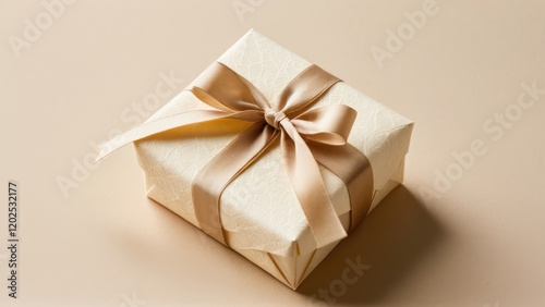 Decorative gift box with textured ivory paper, flower detail, and satin bow, ideal for special occasions.
