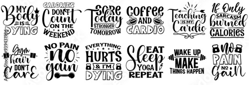 Decorative Gym And Fitness Typographic Emblems, Trendy Retro Style Illustration Pack Vector Illustration for Flyer, Banner, Vouchers