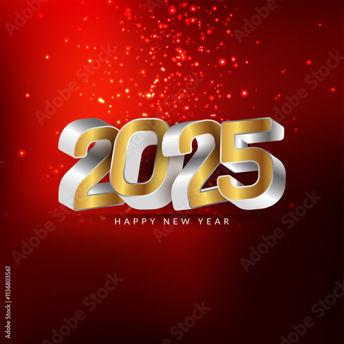 Decorative Happy new year 2025 greeting card with golden text