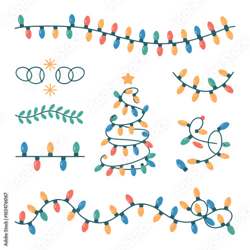 Decorative Holiday Light Strip Icons — Glowing String Lights and Festive Arrangements