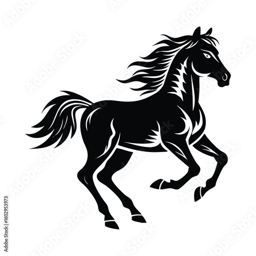 Decorative Horse Silhouette in Motion with Flowing Mane and Ornamental Line Patterns