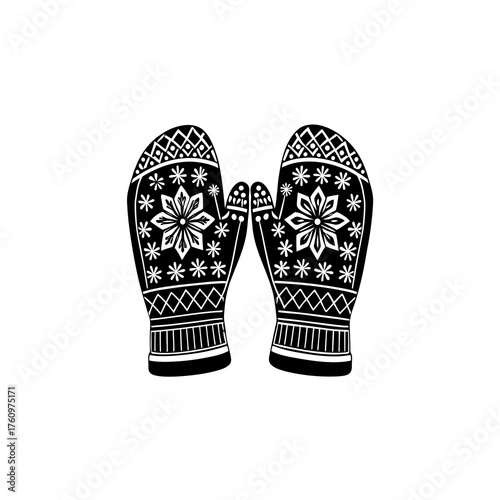Decorative mittens with floral patterns, isolated on a white background, winter apparel